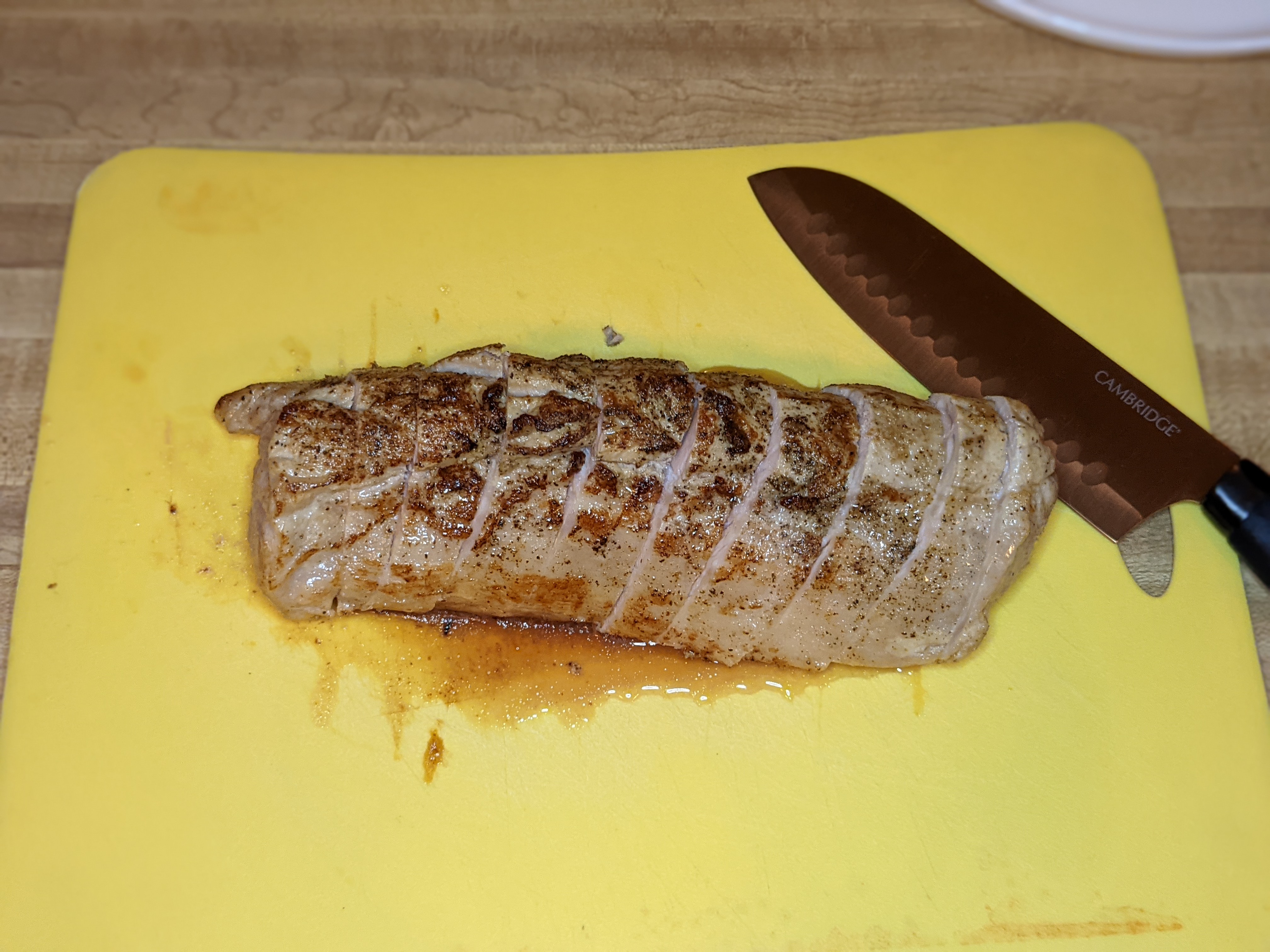 I personally enjoy this level of cooking; my boyfriend prefers cooked a little more, so we sear his medallions after cooking the whole loin to get rid of the pink center. If the minimum internal temperature is met, the color and amount of cooking thereafter is a personal preference. That said, it is perfectly fine (and recommended) to cook to the juicy-medium-rare of 145°F. Read more about pork-cooking temperature here, at Pork.org.