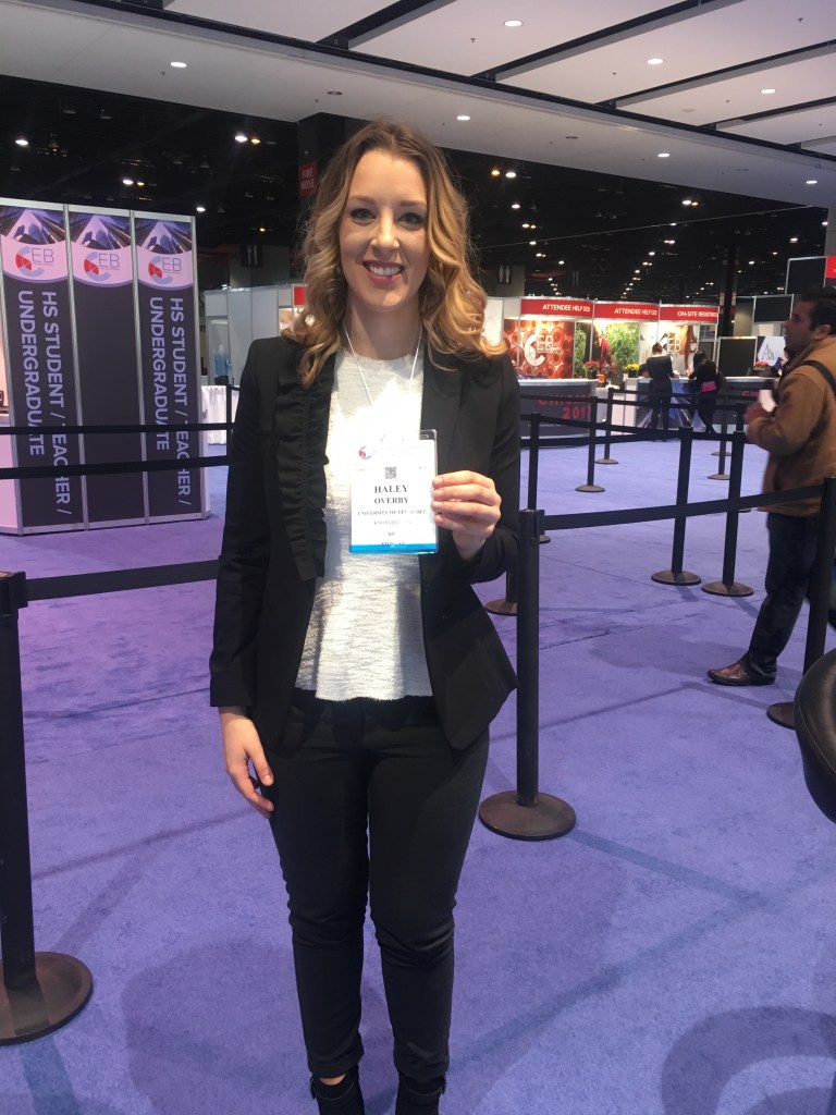 Dr. Haley Overby at Experimental Biology 2018 in San Diego, CA presenting two posters of her research. (Also pictured: Tory Frankel M.S.)