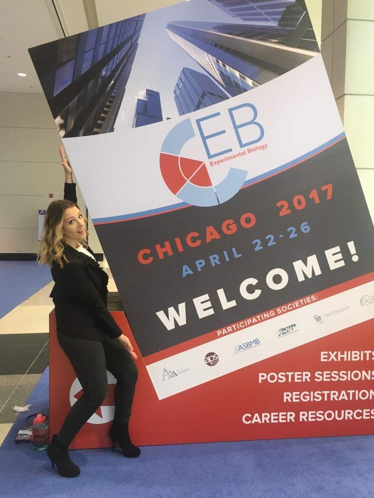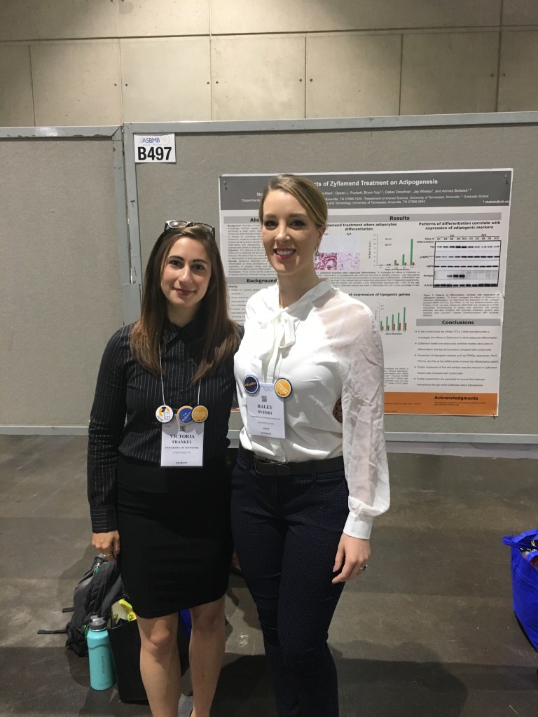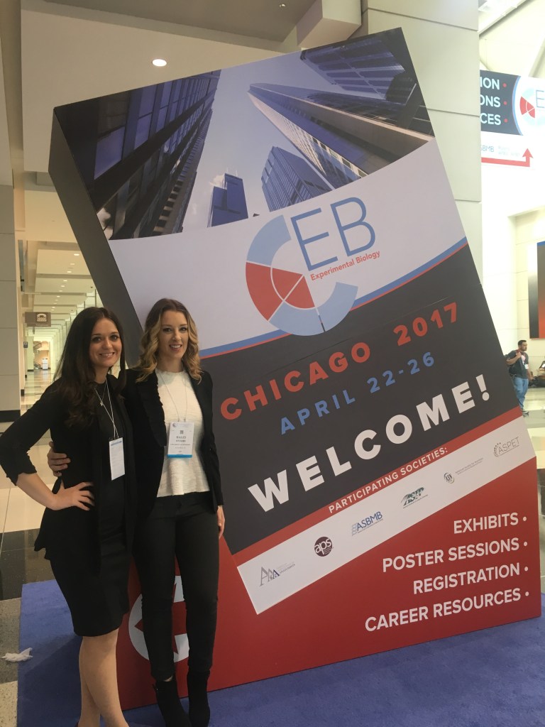 Dr. Haley Overby at Experimental Biology 2017 in Chicago, IL, delivering an oral presentation regarding nanoparticles encapsulated with Resveratrol. (Also pictured: Amber MacDonald M.S.)