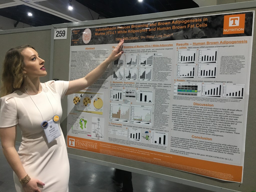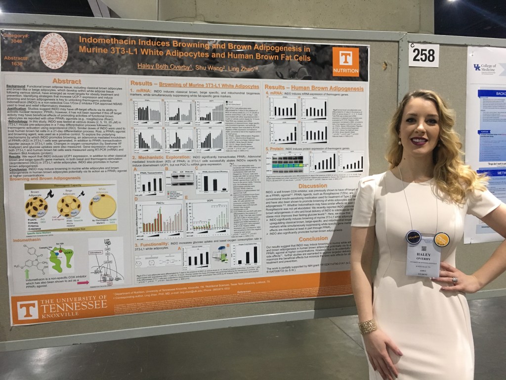 - Overby H, Wang S, Zhao L. Indomethacin induces browning and brown adipogenesis in murine 3T3-L1 white adipocytes and human brown fat cells. FASEB J. April 2018;32:571.2. [Experimental Biology 2018, Poster Presentation]