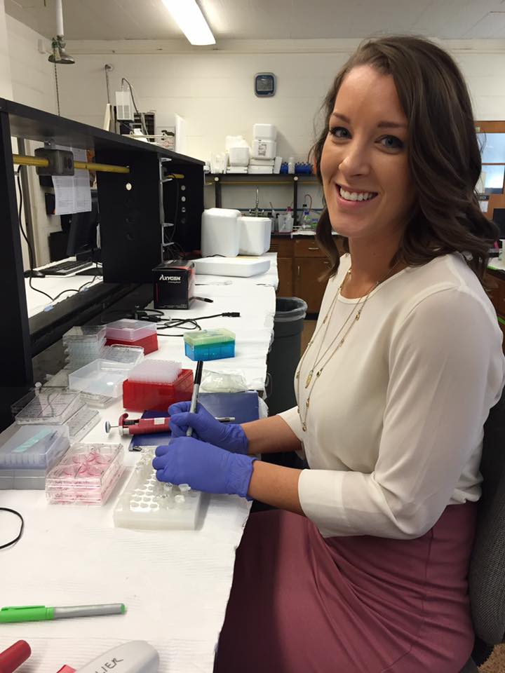 (I) The primary and R15-funded project she worked on involved the use of Resveratrol encapsulated nanoparticles to treat a murine adipocyte cell-line (3T3-L1), murine primary stromal cells, human primary subcutaneous stem cells, human brown cell-line, as well as in vivo work in C57-BL6J mice. (II) She also worked with non-steroidal anti-inflammatory drug (NSAID), Indomethacin, using similar cell models. Although these projects were the primary focus of her dissertation (entitled, “Exploring novel anti-obesity strategies: Nutritional and pharmacological interventions to induce browning and brown adipogenesis”), (III) Dr. Overby’s initial research inquiry involved work with parabens and their effect on fat, bone, and muscle differentiation. (IV) She also worked quite a bit with n-3 derived epoxides and soluble epoxide hydrolase (SEH) inhibitors and exploring their role in brown adipogenesis. (V) Finally, she gained human clinical study experience and worked to pioneer co-culturing conditions to assist in our understanding of the host-gut microbiota relationship.
